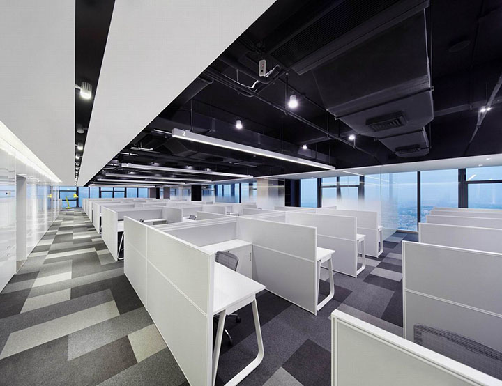 美的地產(chǎn)集團(tuán)是美的控股下屬重要成員企業(yè),在空間設(shè)計(jì)策略里融入了開(kāi)放、和諧、務(wù)實(shí)、創(chuàng)新的美的精神,充分展現(xiàn)美的地產(chǎn)的企業(yè)形象。辦公室裝修設(shè)計(jì)空間整體以開(kāi)放的姿態(tài)呈現(xiàn),由接待區(qū)、辦公區(qū)、會(huì)議培訓(xùn)區(qū)和總裁辦公區(qū)四個(gè)區(qū)域組成。辦公區(qū)可容納70人辦公,利用漸變玻璃作半圍合隔斷,在形成獨(dú)立總監(jiān)辦公區(qū)的同時(shí),還能讓所有員工享受窗外風(fēng)景。