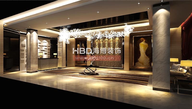 大廳的設(shè)計強調(diào)線形流動的變化,色彩華麗,暗黃色的天花燈槽、閃耀著異樣光芒的水晶燈飾,無不呈現(xiàn)富麗堂皇的景象。每一處細(xì)節(jié)恰到好處的處理給俱樂部加分,大型水晶吊燈靜靜地泛著影影綽綽的燈光,朦朧、浪漫之感油然而生,風(fēng)情萬種。舒適的座椅、極具創(chuàng)意的燈飾、櫥窗邊的略帶點中式風(fēng)格的雕塑、唯美的水池,整個俱樂部溫馨如家,讓到訪者的心情更為愉悅放松!